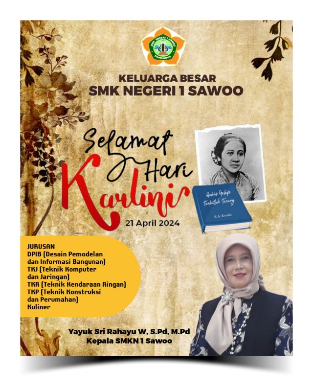 Home Ponorogo Keluarga Besar SMKN 1 Sawoo Mengucapkan Selamat Hari Kartini 21 April 2024 DaerahPonorogo Keluarga Besar SMKN 1 Sawoo Mengucapkan Selamat Hari Kartini 21 April 2024 By Redaksi Media Ponorogo - April 21, 2024 0 Facebook Twitter Google+ Pinterest WhatsApp