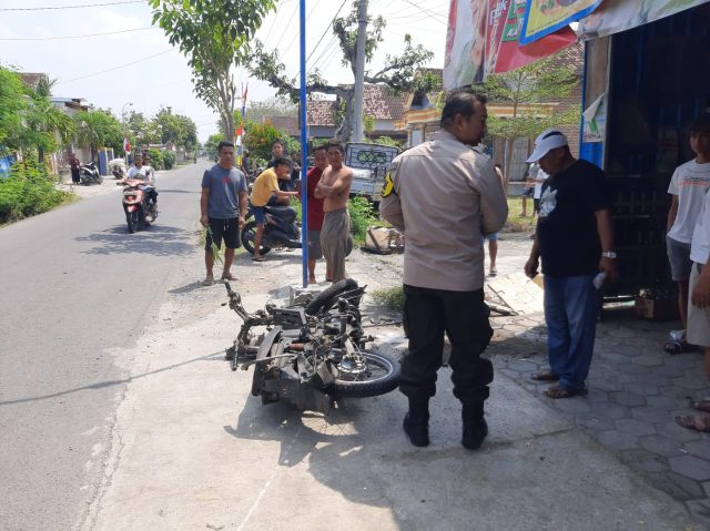 SUKOREJO, Media Ponorogo – Kecelakaan lalu lintas terjadi di depan toko Bu Nanik Barokah, Dukuh Krajan, Desa Prajegan, Kecamatan Sukorejo, Ponorogo, Sabtu (23/8/2025) siang.