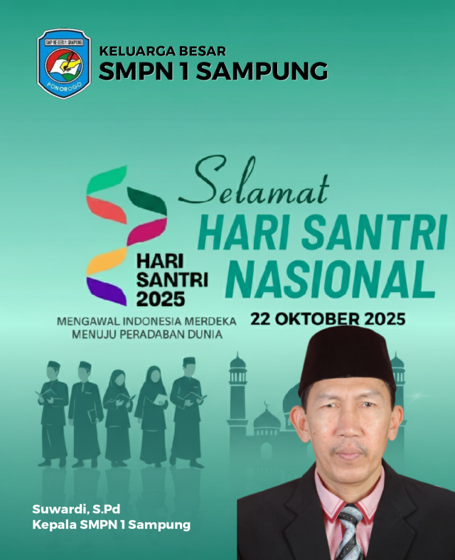 Home Headline Keluarga Besar SMPN 1 Sampung Mengucapkan Selamat Hari Santri Nasional 22 Oktober... HeadlineNasionalDaerahPonorogo Keluarga Besar SMPN 1 Sampung Mengucapkan Selamat Hari Santri Nasional 22 Oktober 2025 By Redaksi Media Ponorogo - October 17, 2025 0 Facebook Twitter Google+ Pinterest WhatsApp
