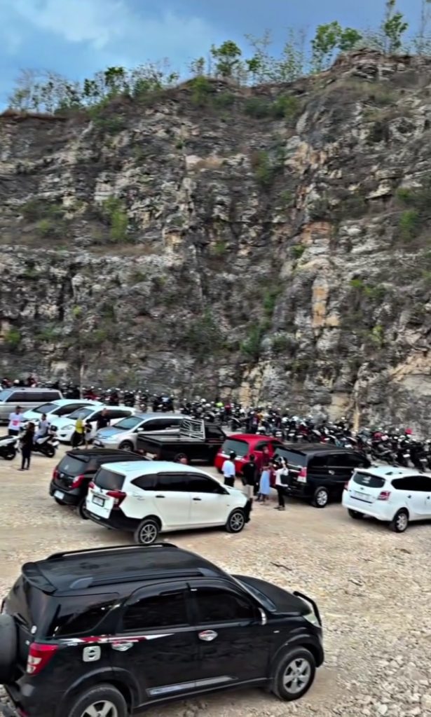 Suasana mirip pasar dadakan atau area piknik yang hidup. Kendaraan dari berbagai daerah, tak hanya berplat AE (Madiun dan sekitarnya), tetapi juga N, S, W, AD hingga B, memadati area parkir.