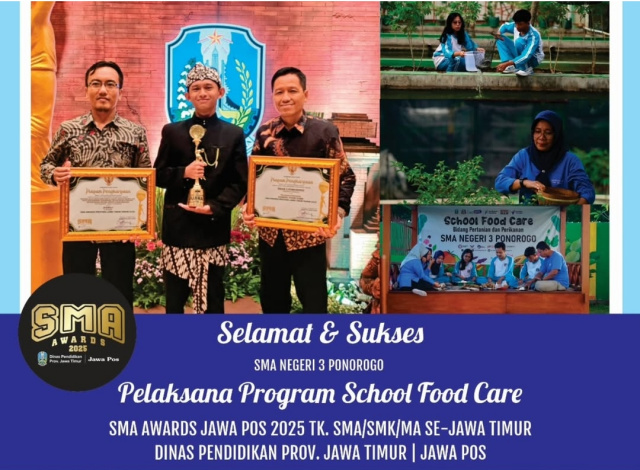 Penghargaan tersebut menjadi bukti nyata keberhasilan SMAN 3 Ponorogo dalam mengimplementasikan program yang inovatif dan berkelanjutan.