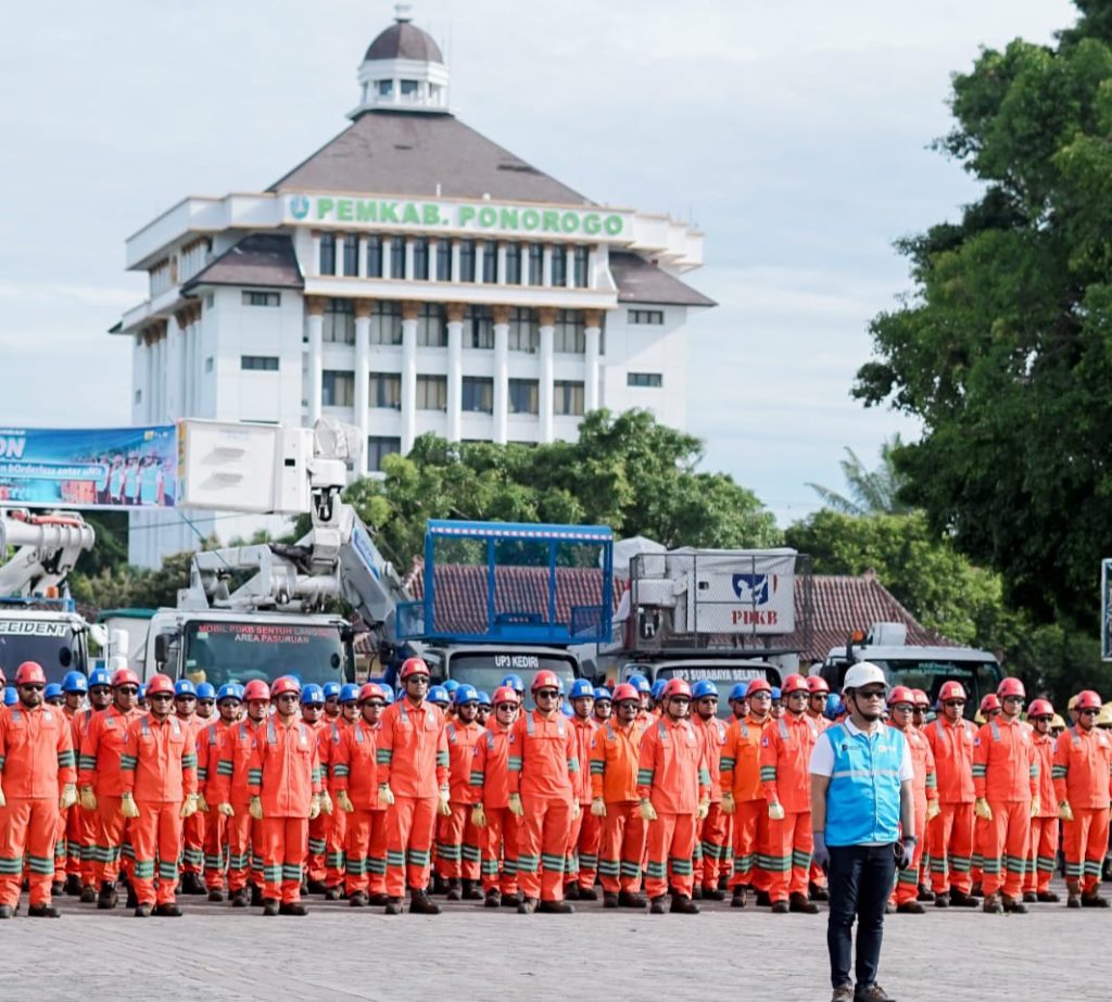 PONOROGO, Media Ponorogo — Dalam upaya meningkatkan keandalan pasokan listrik bagi masyarakat, PLN Unit Pelaksana Pelayanan Pelanggan (UP3) Ponorogo menggelar Apel Maraton Pemeliharaan Jaringan Tegangan Menengah (JTM) dengan menerapkan konsep borderless antar unit se-Jawa Timur, Selasa (18/11/2025).