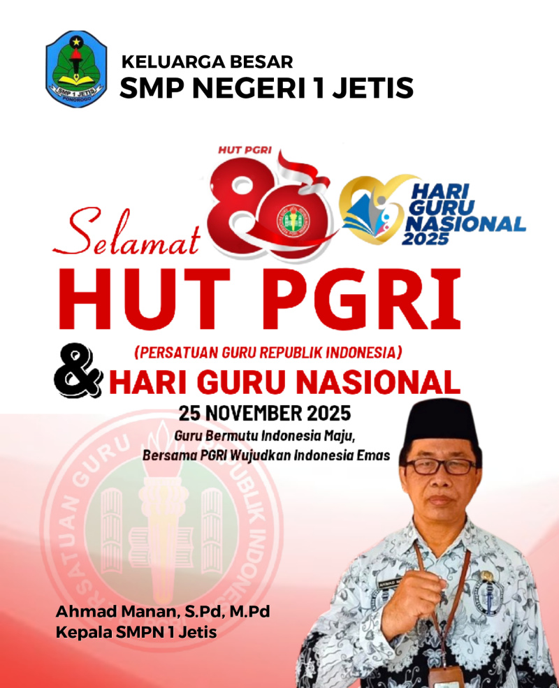 Home Ponorogo Keluarga Besar SMPN 1 Jetis Ponorogo Mengucapkan Selamat HUT Ke-80 PGRI &... DaerahPonorogo Keluarga Besar SMPN 1 Jetis Ponorogo Mengucapkan Selamat HUT Ke-80 PGRI & Hari Guru Nasional (HGN) 25 November 2025 By Redaksi Media Ponorogo - November 22, 2025 0 Facebook Twitter Google+ Pinterest WhatsApp