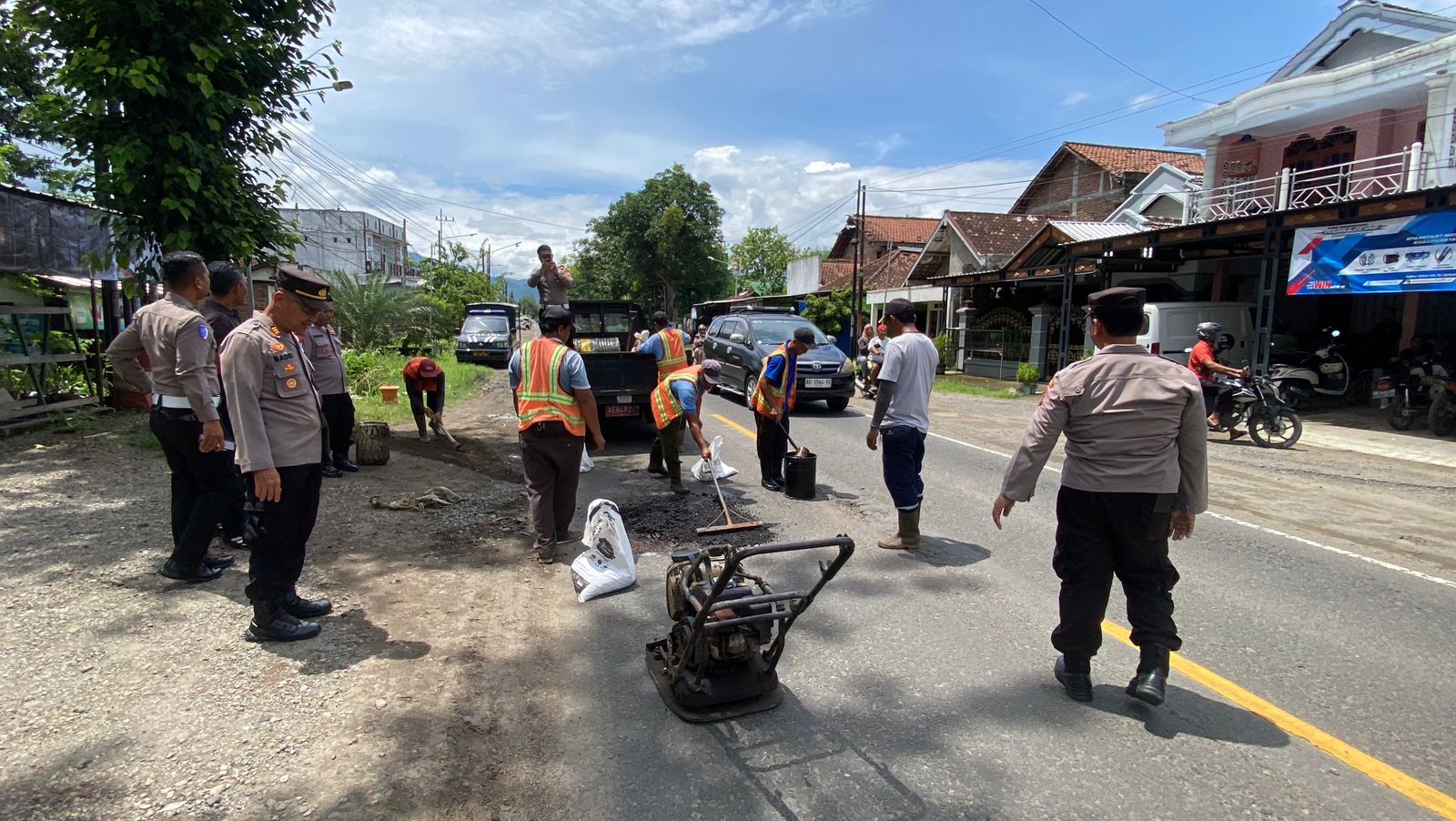 “Kami mendapatkan laporan dan aduan warga, yang kemudian diperkuat dengan adanya kejadian laka lantas tunggal pada hari Minggu sore yang sangat disayangkan memakan korban jiwa. Dugaan kuat penyebabnya adalah lubang di jalan nasional tersebut yang memiliki diameter cukup lebar dan dalam,” ujar AKP Baderi.
