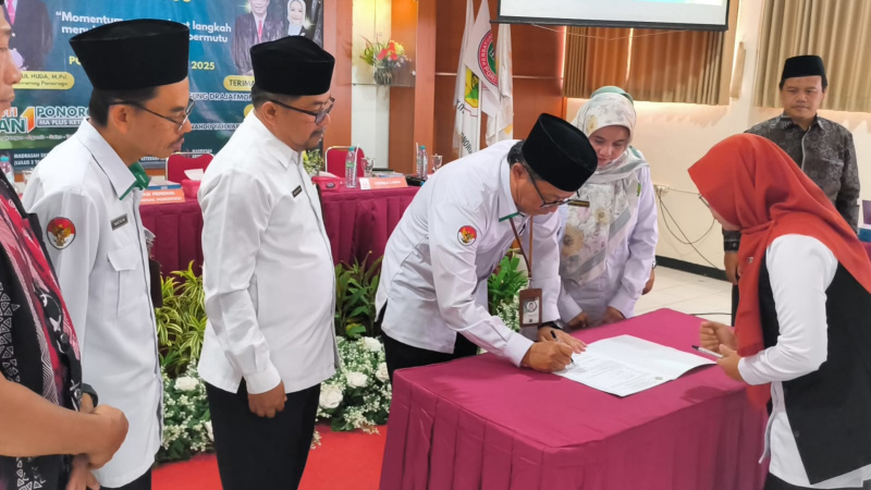 Kepala Kantor Kementerian Agama (Kemenag) Ponorogo, Dr. H. Moh Nurul Huda, M.Pd., memberikan apresiasi yang tinggi kepada Agung Drajatmono atas dedikasinya selama ini.