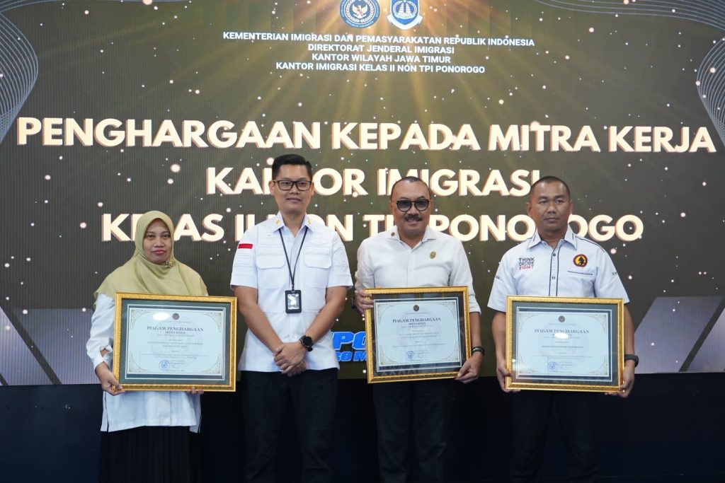 Sebagai bentuk apresiasi, pada kesempatan yang sama, Kepala Kantor Imigrasi Ponorogo menyerahkan penghargaan dari Plt. Direktur Jenderal Imigrasi kepada mitra kerja, yaitu:- Dinas Komunikasi Informatika dan Statistik Kabupaten Ponorogo atas kontribusi dan kerjasama dalam penyebaran informasi dan publikasi keimigrasian;