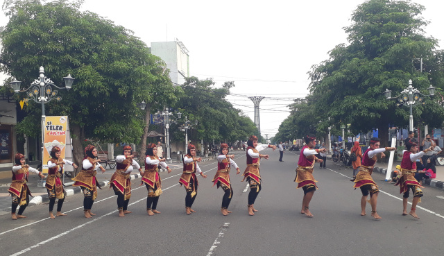 Sebanyak 33 siswa-siswi yang lengkap mengenakan pakaian tradisional menampilkan Tari Glipang oleh kelas XI Seni dan Tari Jaranan oleh kelas X Seni di tengah lalu lalang warga yang menikmati hari bebas kendaraan.