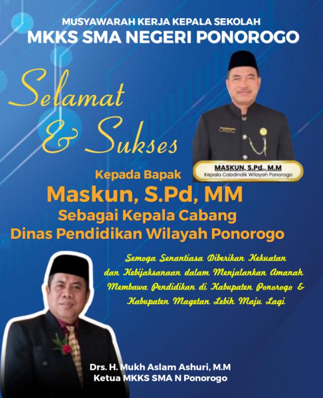 MKKS SMA Negeri Ponorogo Mengucapkan Selamat & Sukses Kepada Bapak Maskun S.Pd, MM sebagai Kepala Cabang Dinas Pendidikan Wilayah Ponorogo