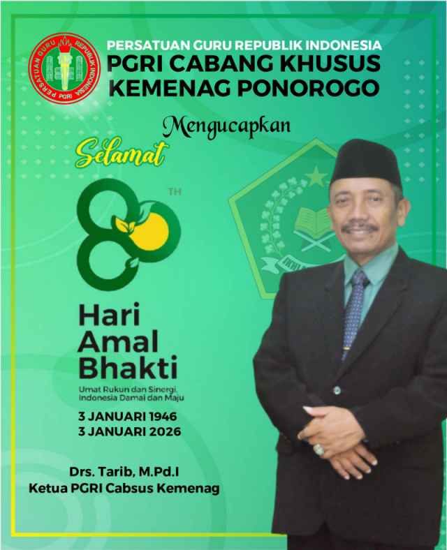 Home Headline PGRI Cabsus Kemenag Ponorogo Mengucapkan Selamat Hari Amal Bhakti Kementerian Agama HeadlineDaerahPonorogo PGRI Cabsus Kemenag Ponorogo Mengucapkan Selamat Hari Amal Bhakti Kementerian Agama By Redaksi Media Ponorogo - December 29, 2025 0 Facebook Twitter Google+ Pinterest WhatsApp