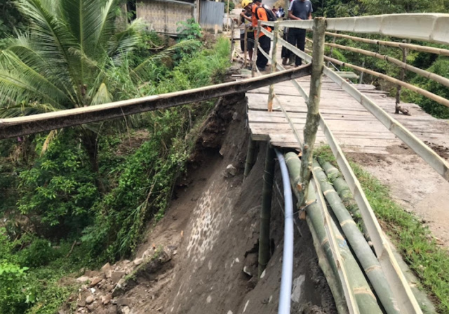 Saat ini, jalur tersebut hanya bisa dilalui dengan ekstra hati-hati oleh pejalan kaki dan kendaraan roda dua. Guna menjaga akses ekonomi dan sosial warga tidak mati total, masyarakat setempat berinisiatif bergotong royong membangun jembatan darurat dari bambu dan kayu di bagian jalan yang tergerus.