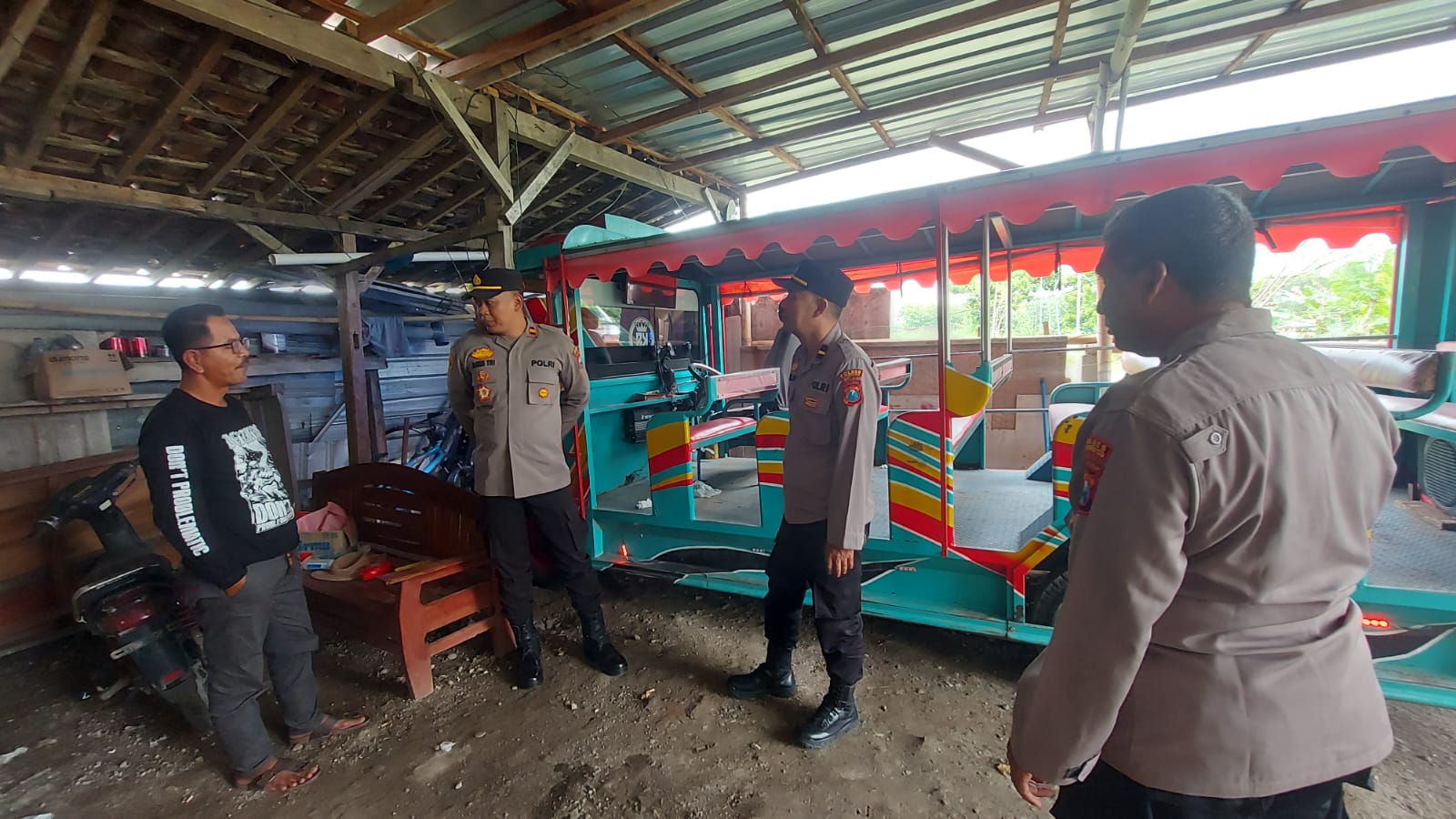 Didampingi Wakapolsek Sukorejo IPDA Bambang Fajar, S, S.H., beserta jajaran Kanit Intel, Kanit Binmas, dan Kanit Reskrim, IPTU Agus menemui langsung pemilik kereta kelinci untuk memberikan edukasi terkait keamanan berkendara sesuai standar hukum yang berlaku.