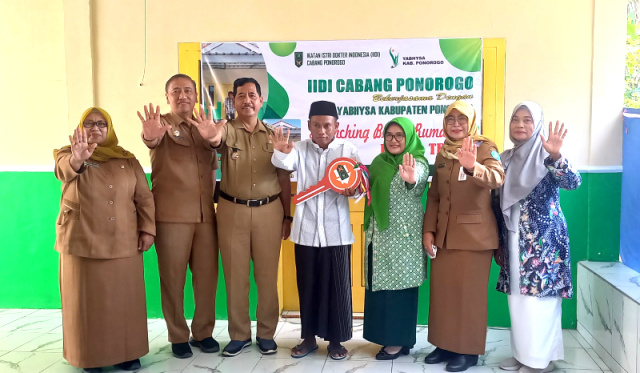 Aksi sosial ini ditandai dengan penyerahan secara simbolis kunci hasil program bedah rumah kepada Nasrullah oleh Ketua IIDI Cabang Ponorogo.